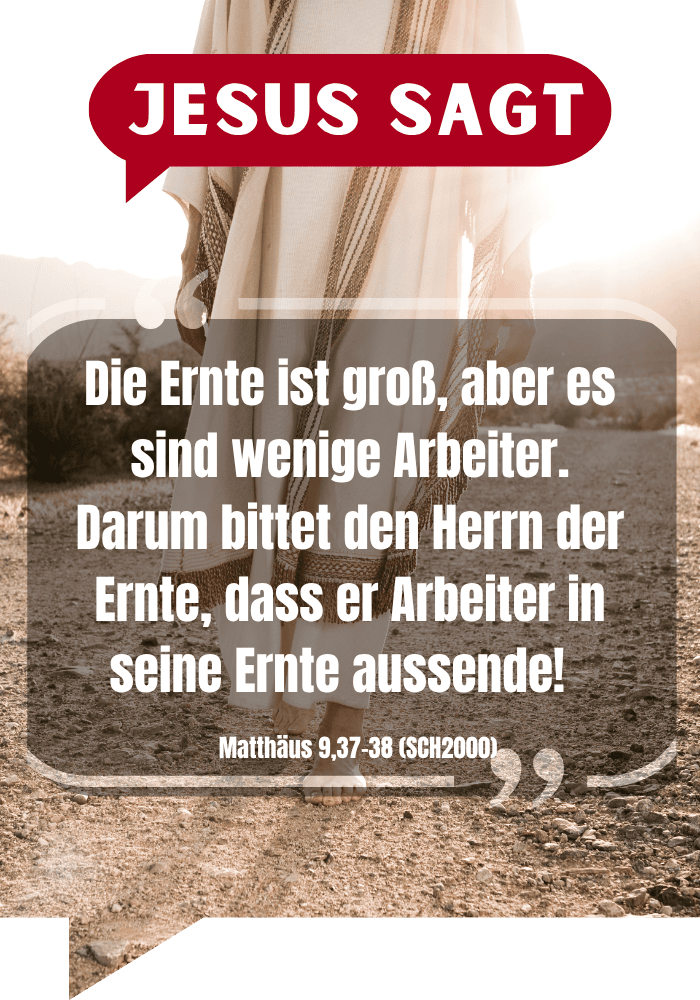 „Die Ernte ist groß, aber es sind wenige Arbeiter. Darum bittet den Herrn der Ernte, dass er Arbeiter in seine Ernte aussende!“